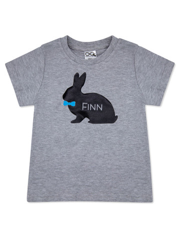 A fun and stylish way to add a little 'Hop' to your childs wardrobe this Easter. With cute bunny ears adorning the first letter in the name, its a design that can be worn or Easter and beyond.